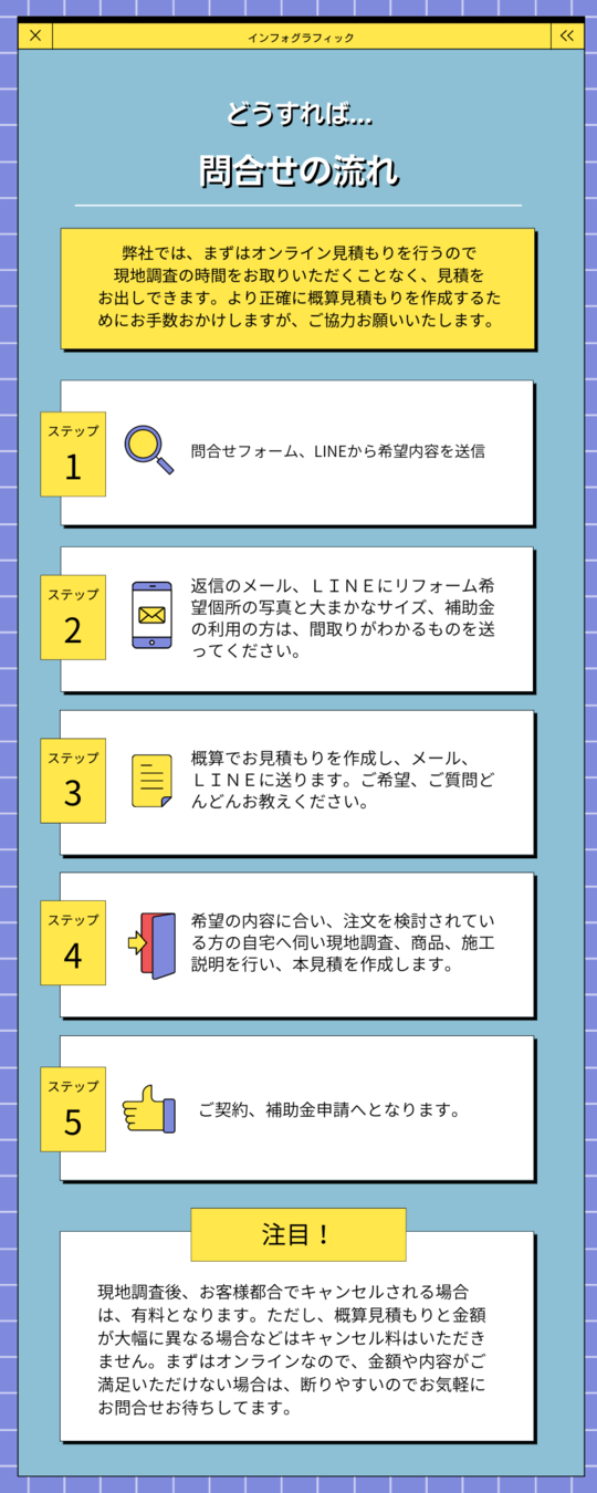 2、見積もり、作業はマスク着用し消毒の上お伺いいたします。