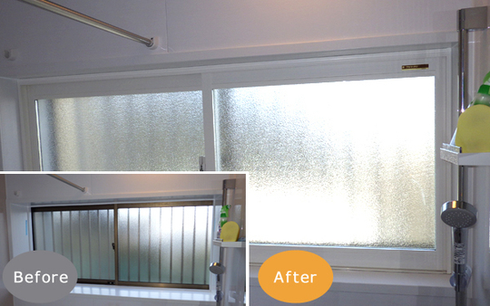 浴室(バスルーム)は、窓の数が少なく、サイズも比較的小さいため、窓リフォームは費用もリーズナブルに抑えられます。また、二重窓ならマンションの方でも快適空間にすることも可能です。