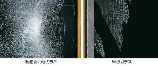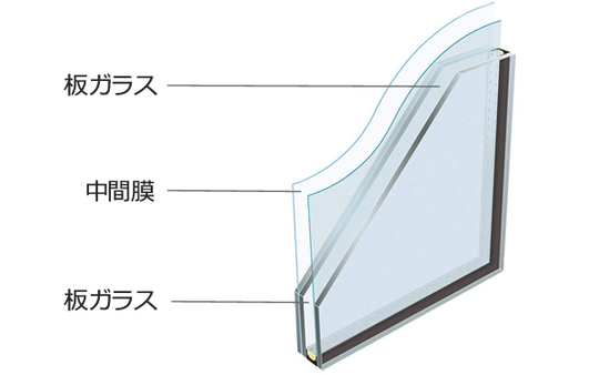 合わせガラスとは、ガラスとガラスの間に特殊な中間膜が入っています。この中間膜が、ガラスが破損をした時に、窓のフレームから抜けない役目を果たします。